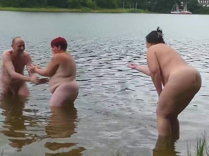 Mein Mann und ich waren mit unserer drallen jungen Freundin an einem FKK See. Nachdem wir uns alle ausgezogen haben sind wir zusammen in das kalte Wasser gegangen. Schau zwei drallen Frauen mit großen Brüsten und dicken Hintern und einem großen Mann dabei zu, wie sich sich in richtig kaltes Wasser begeben.